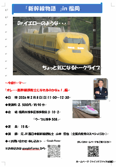 ◆講 師:山本智也(元JR西日本新幹線運転士:企業内教育のスペシャリスト)